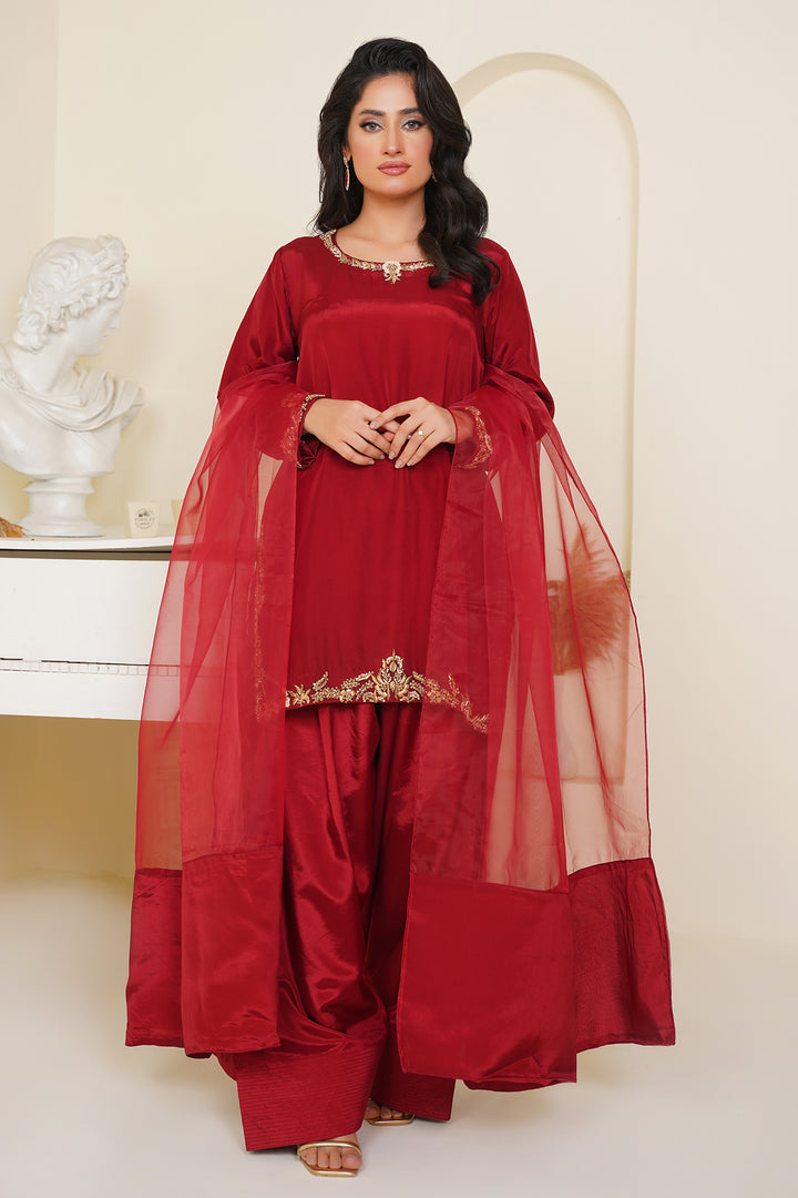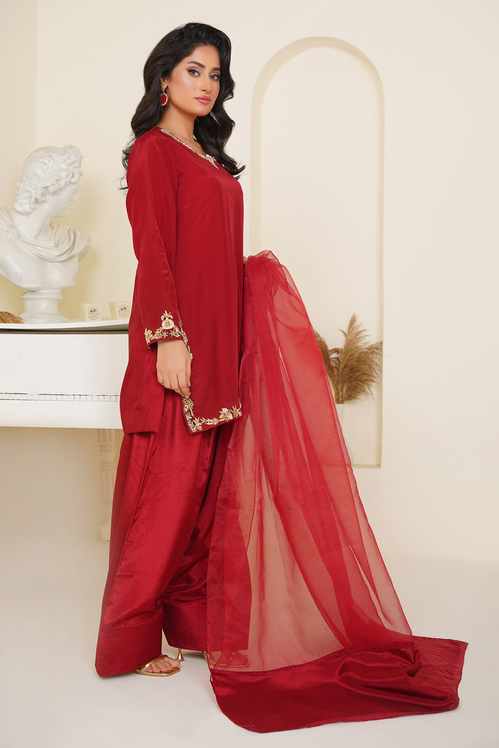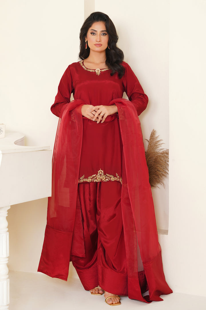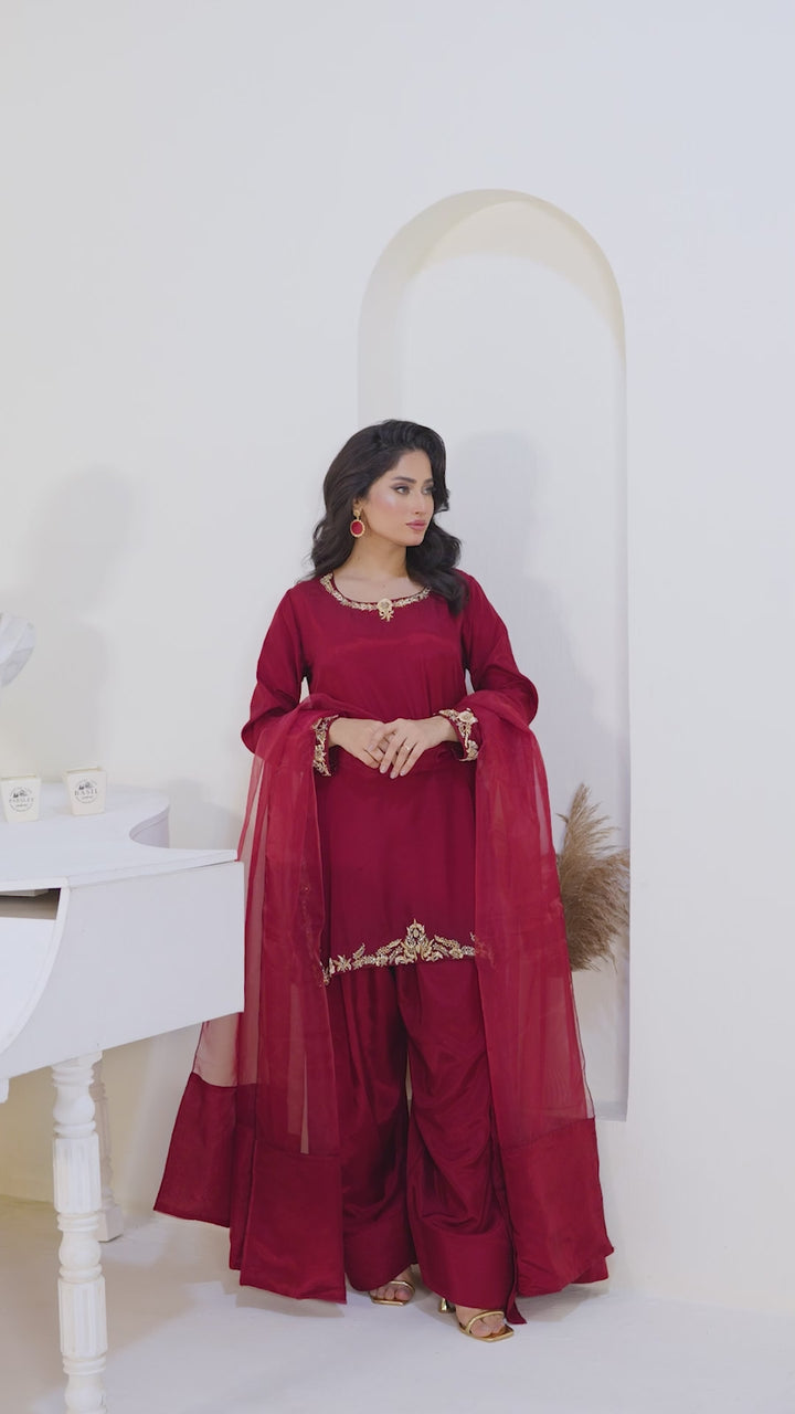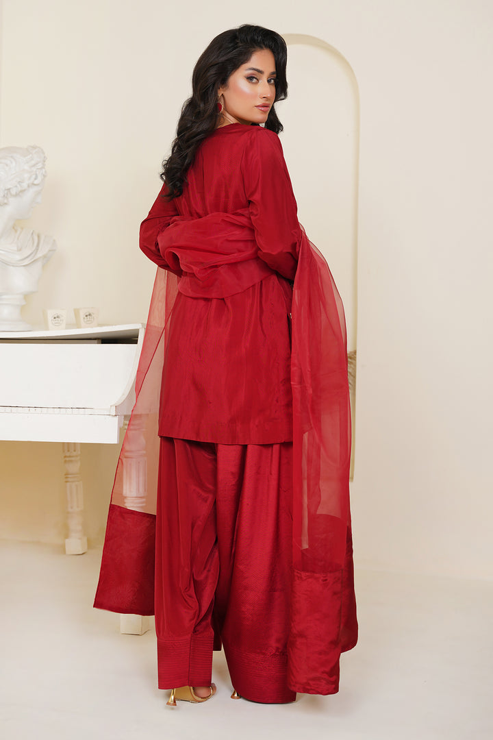 The flowing farshi shalwar brings a regal touch, while the soft organza dupatta adds layers of sophistication. Perfect for evening soirees, festive nights, or formal gatherings, Mehar captures the allure of timeless black with a modern Silkmire twist.