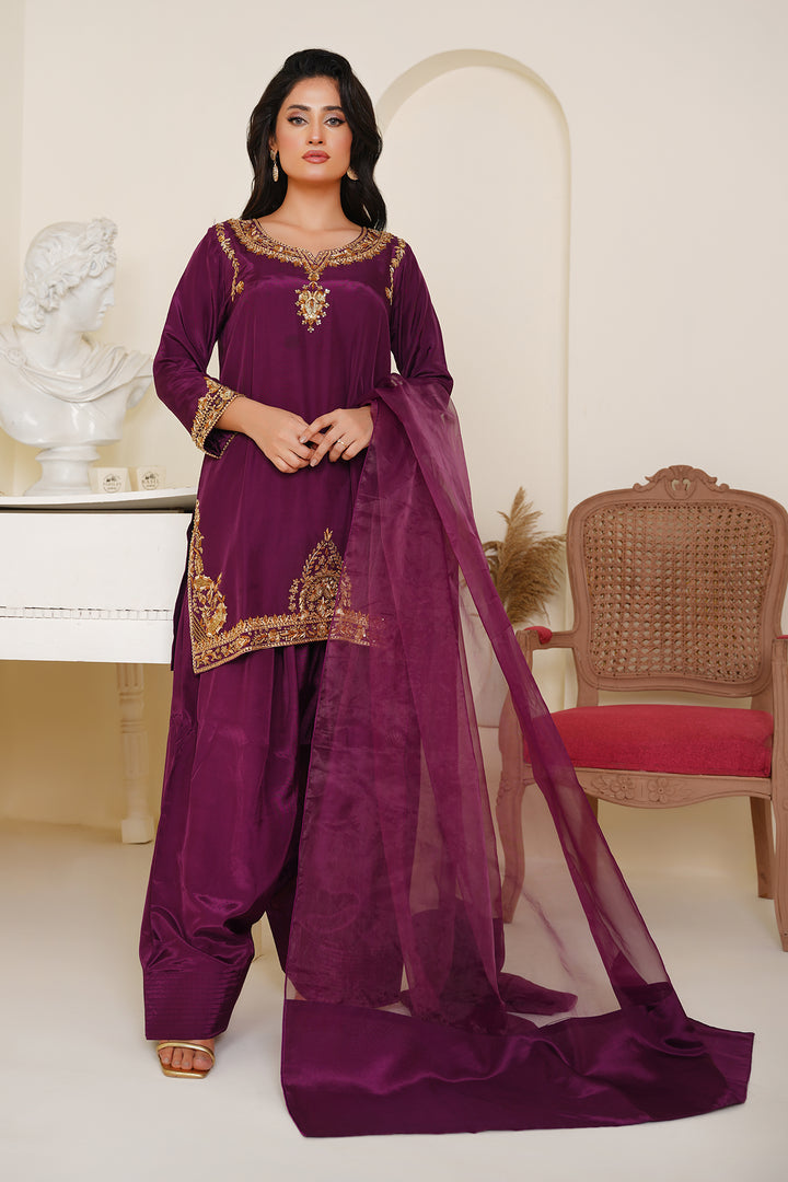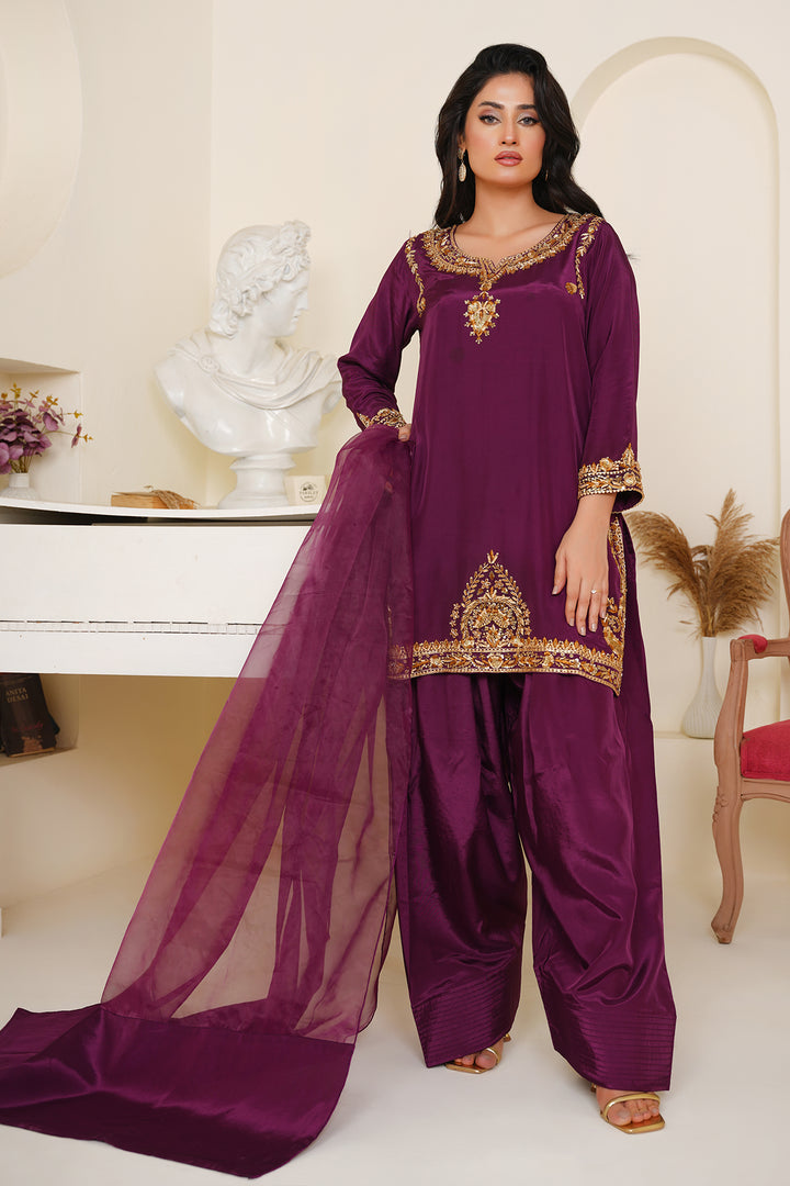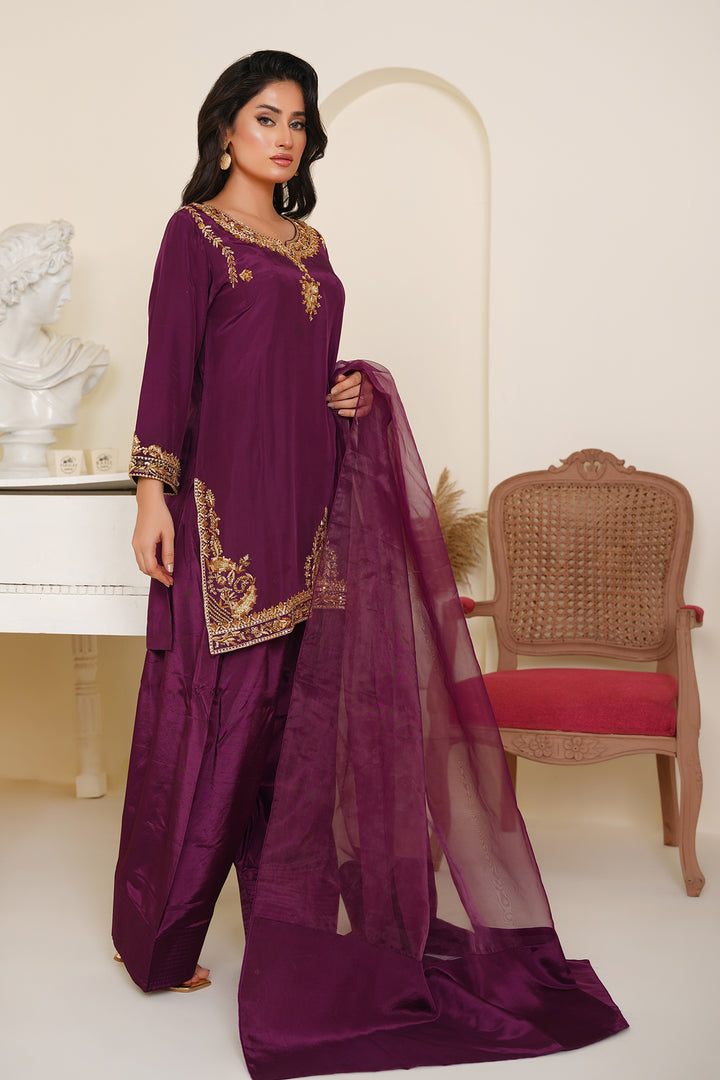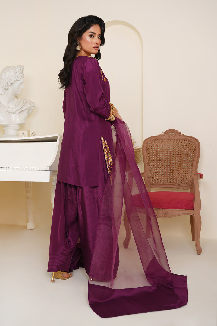 The flowing farshi shalwar brings a regal touch, while the soft organza dupatta adds layers of sophistication. Perfect for evening soirees, festive nights, or formal gatherings, Pakiza captures the allure of timeless black with a modern Silkmire twist.