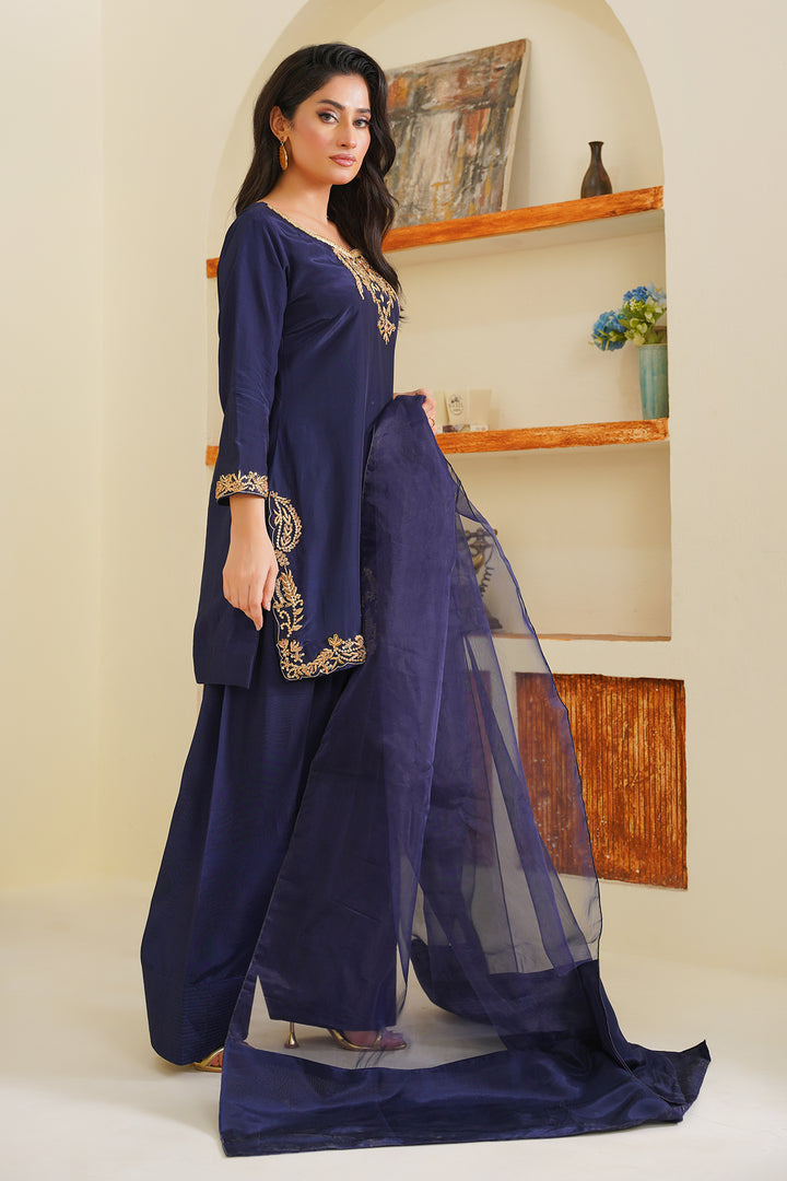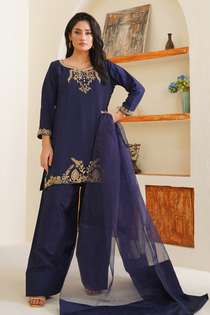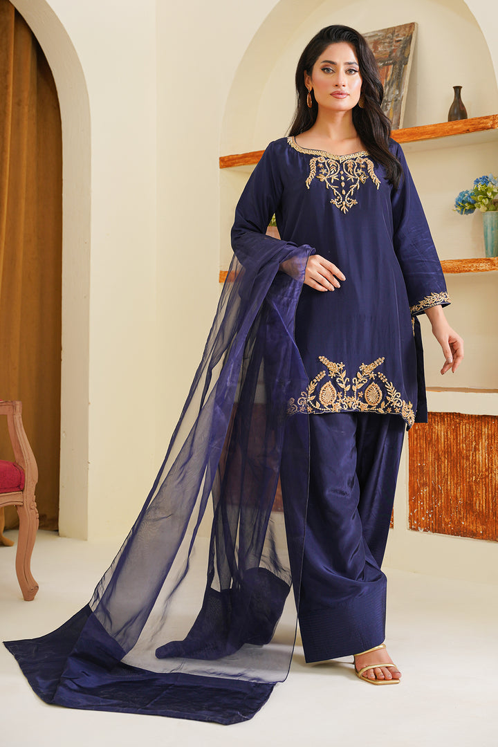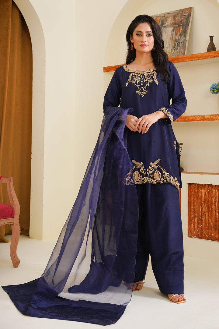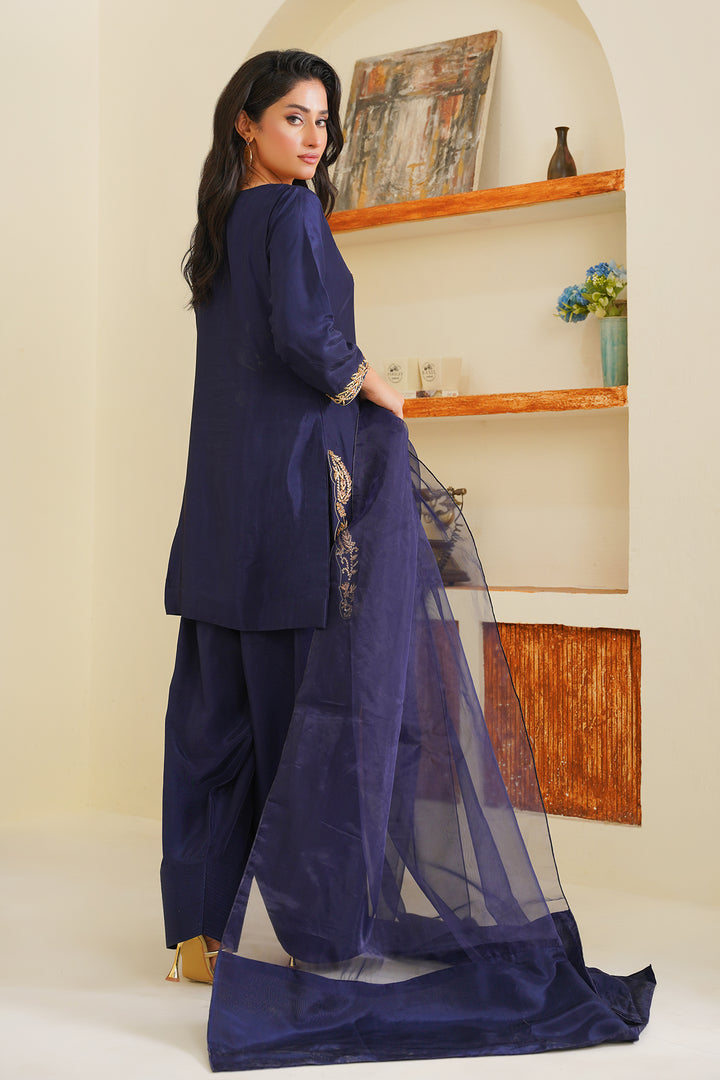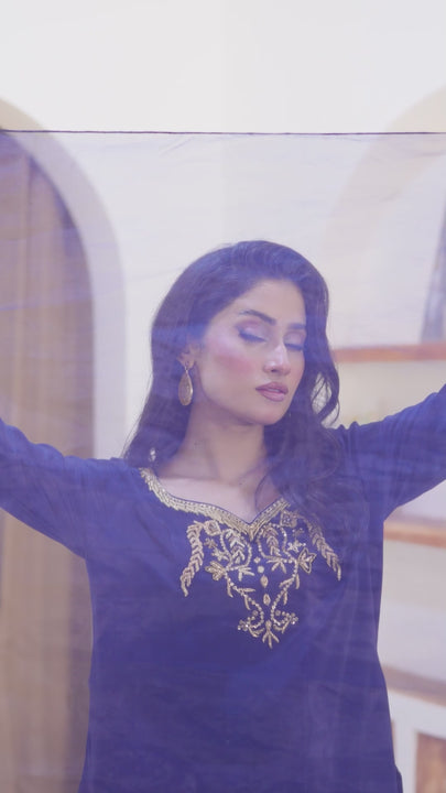 The flowing farshi shalwar brings a regal touch, while the soft organza dupatta adds layers of sophistication. Perfect for evening soirees, festive nights, or formal gatherings, Pakiza captures the allure of timeless black with a modern Silkmire twist.